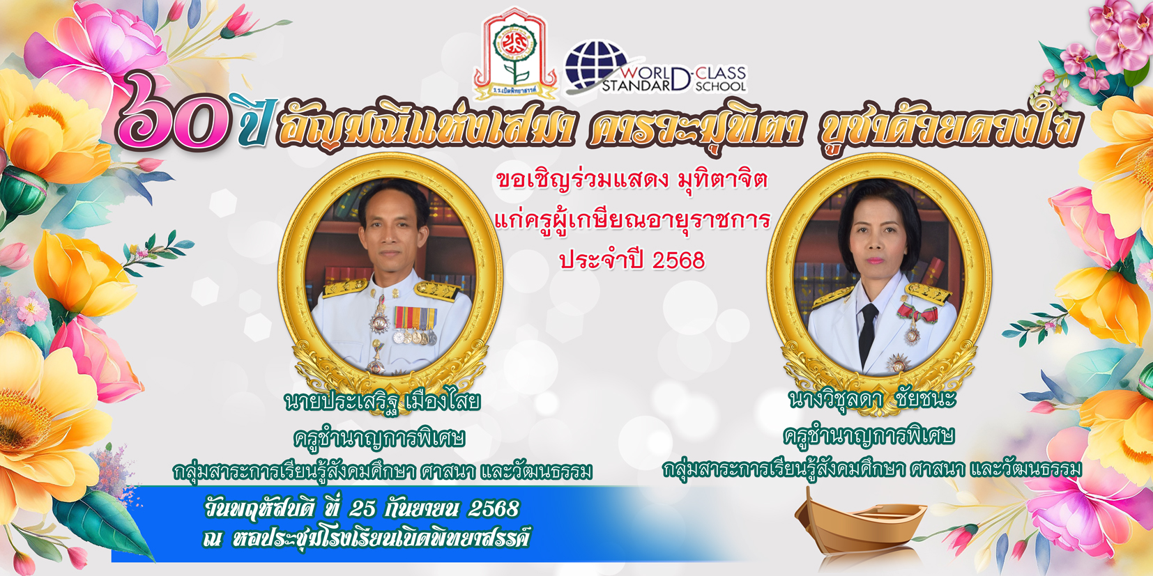 ขอเชิญชวนนักเรียนเข้าร่วมโหวตเพื่อเลือกเสื้อคณะสีประจำปีการศึกษา 2568 ในวันพุธที่ 28 พฤษภาคม 2568 ณ หอประชุม กิจกรรมหน้าเสาธง เวลา 08.00 - 08.30 น. 20 มิ.ย. 68